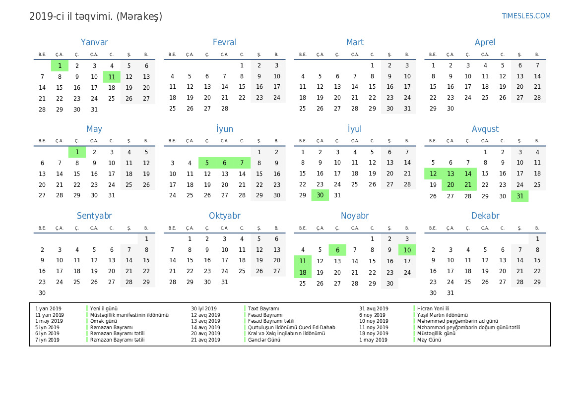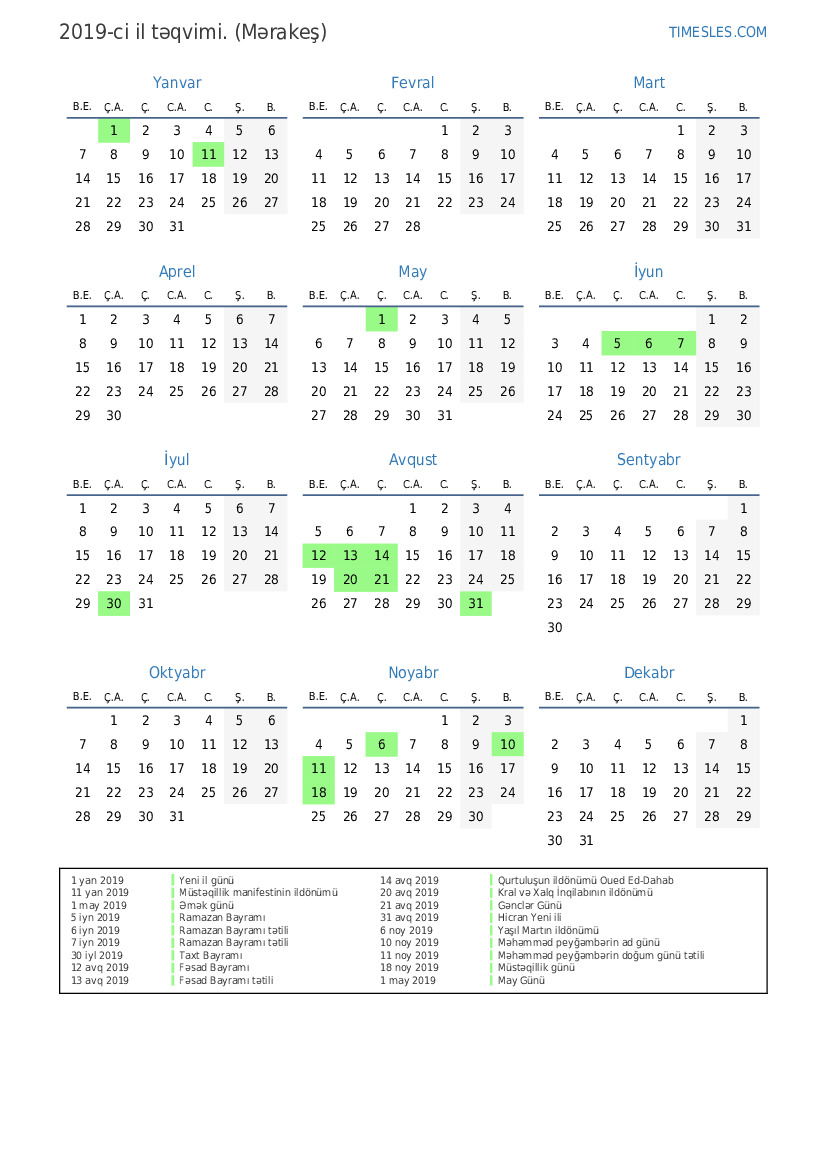 11 noy 2019 Məhəmməd peyğəmbərin doğum günü tətili