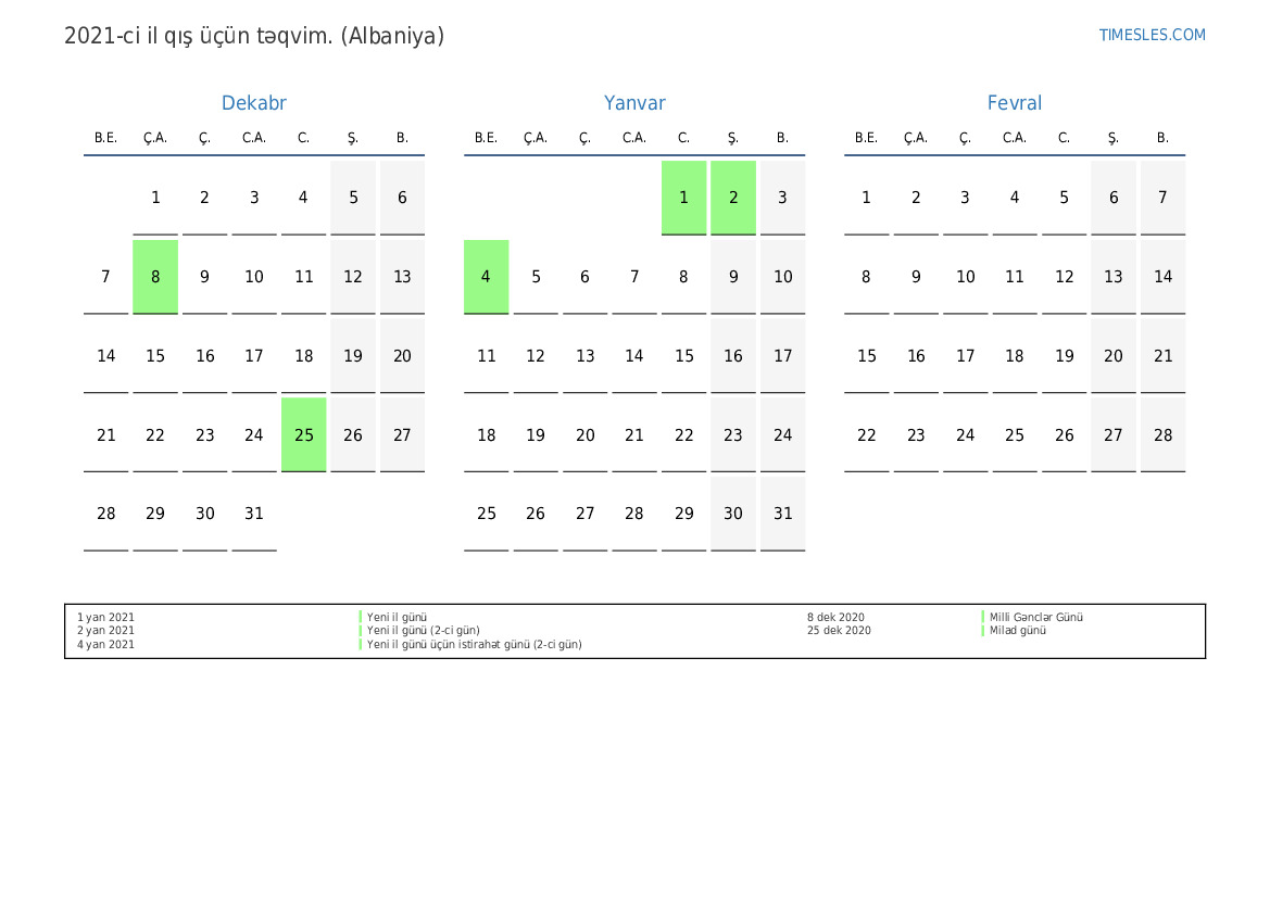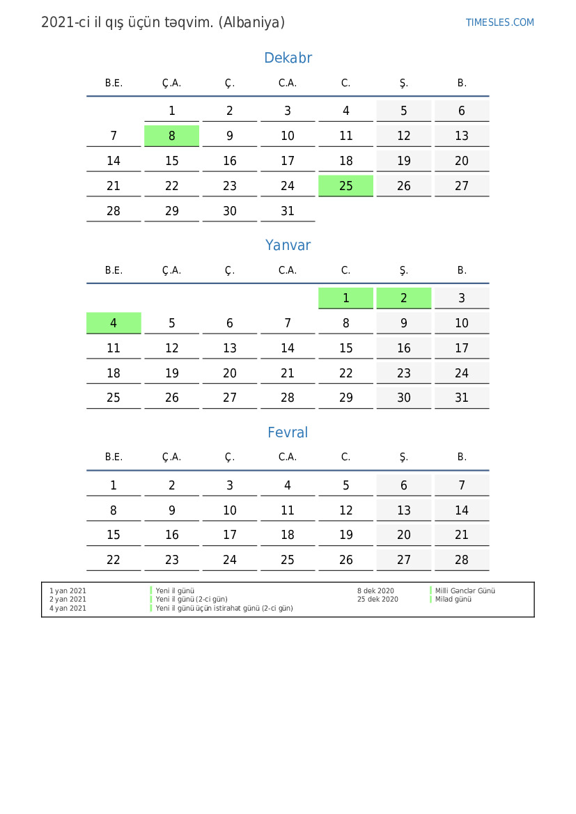 4 yan 2021 Yeni il günü üçün istirahət günü (2-ci gün)