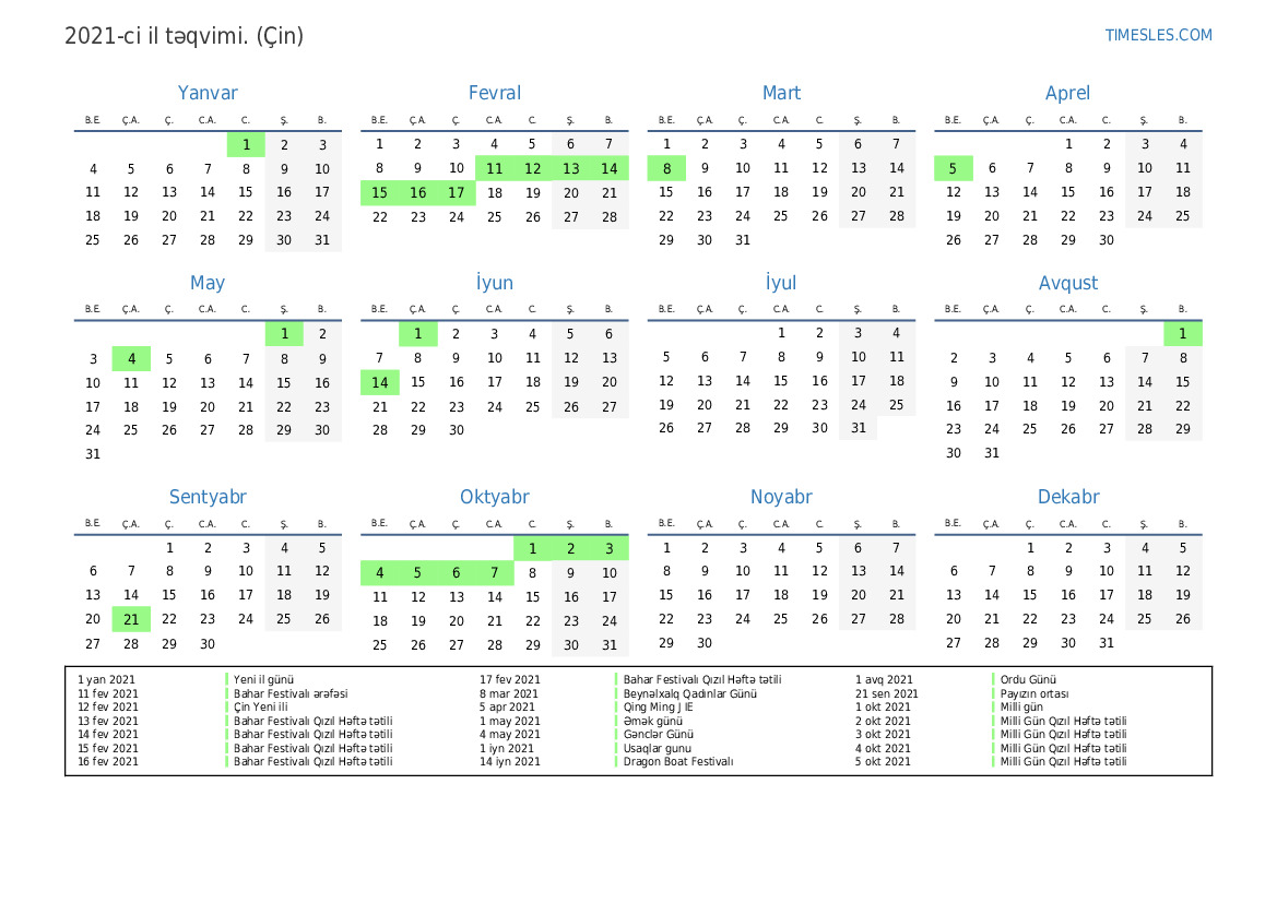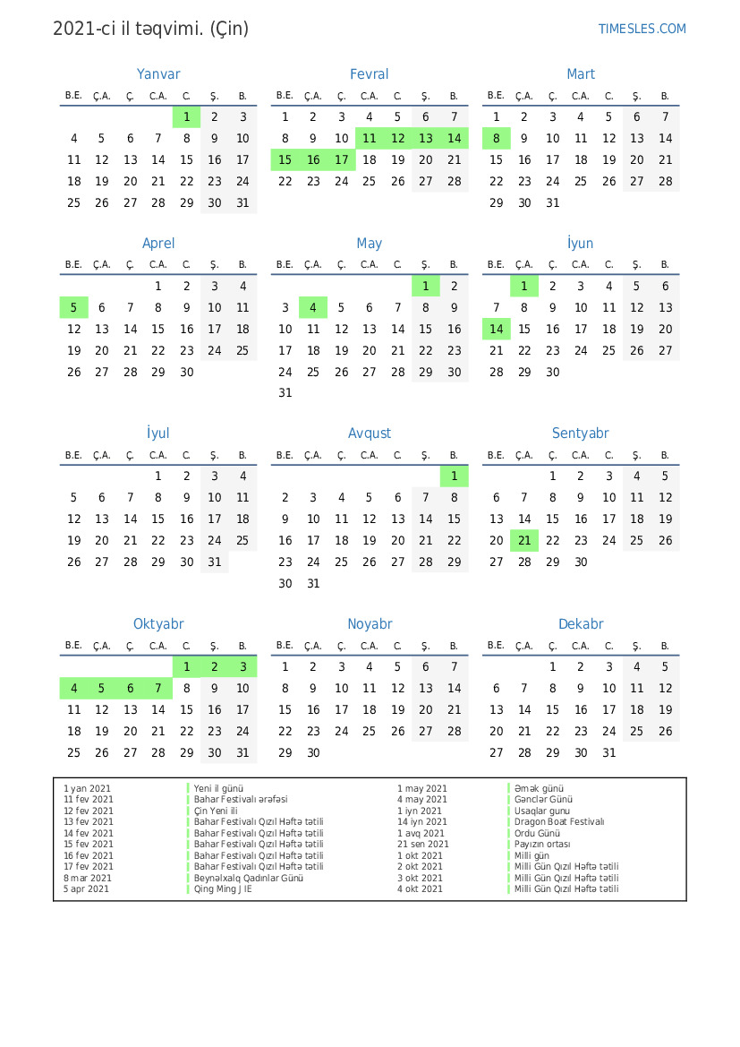 15 fev 2021 Bahar Festivalı Qızıl Həftə tətili