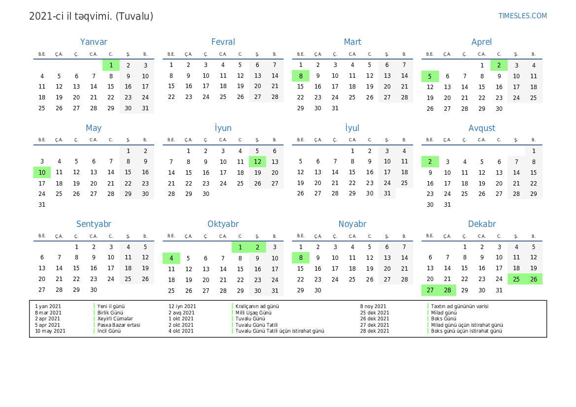 4 okt 2021 Tuvalu Günü Tətili üçün istirahət günü