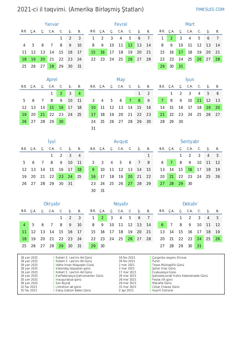 31 dek 2021 Yeni il günü üçün istirahət günü