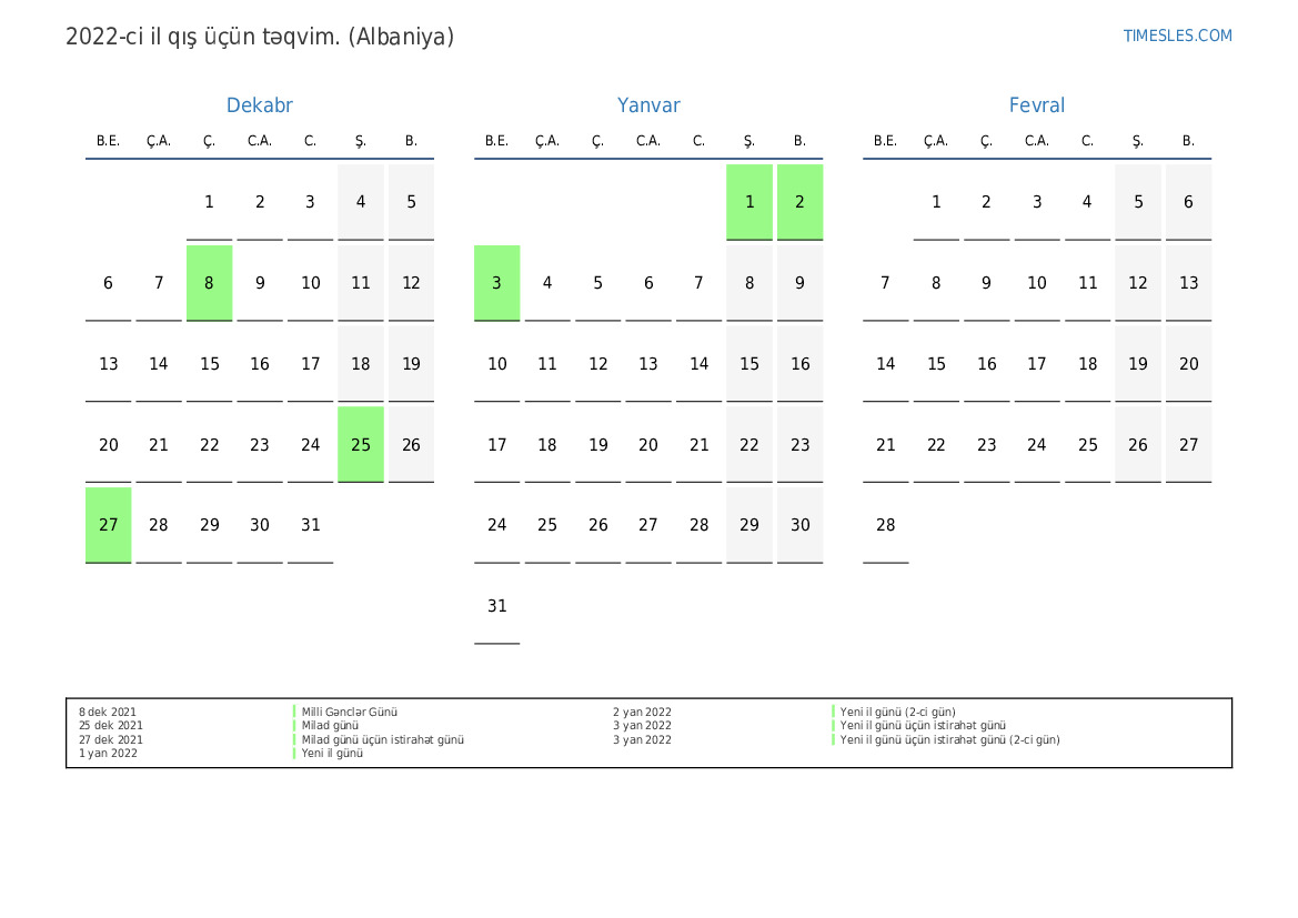 3 yan 2022 Yeni il günü üçün istirahət günü