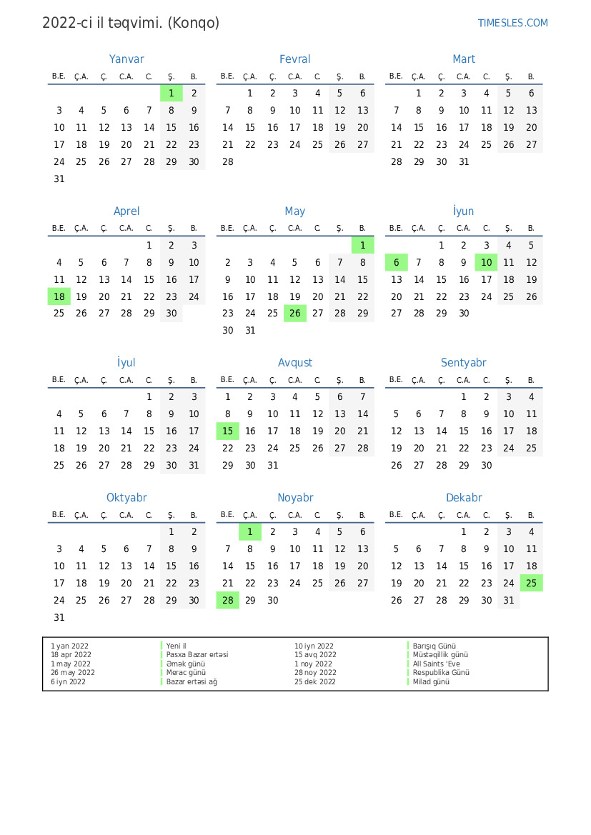 Konqo üçün 2022 təqvim