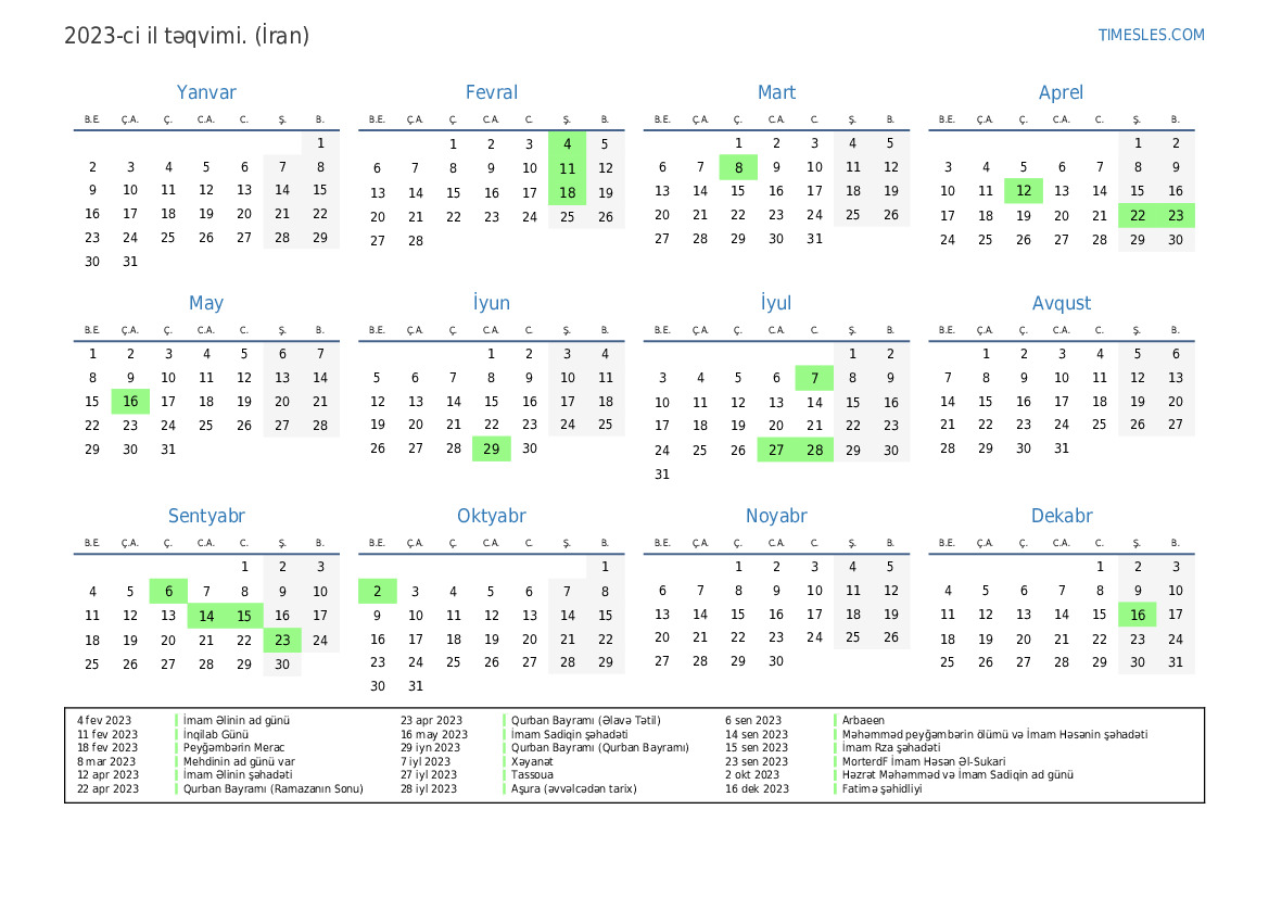 23 apr 2023 Qurban Bayramı (Əlavə Tətil)