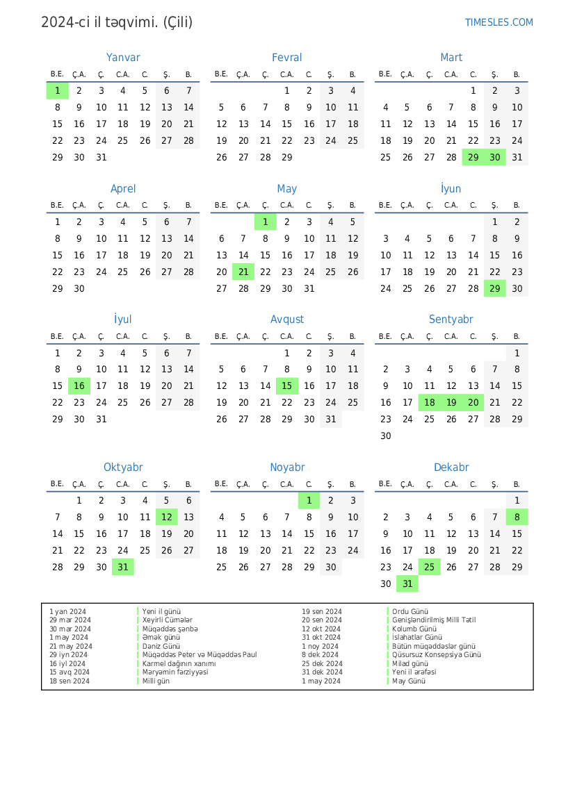 20 sen 2024 Genişləndirilmiş Milli Tətil