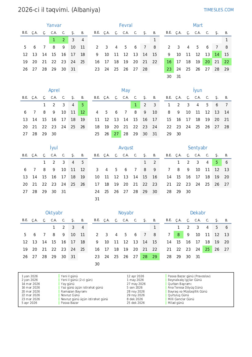 20 mar 2026 Mart bərabərliyi