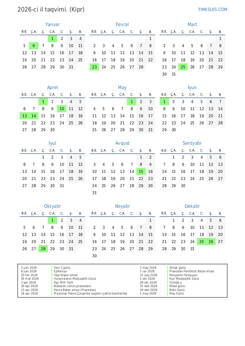 12 apr 2026 Pasxa Bazar günü (Pravoslav)
