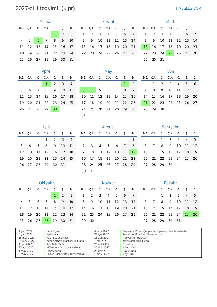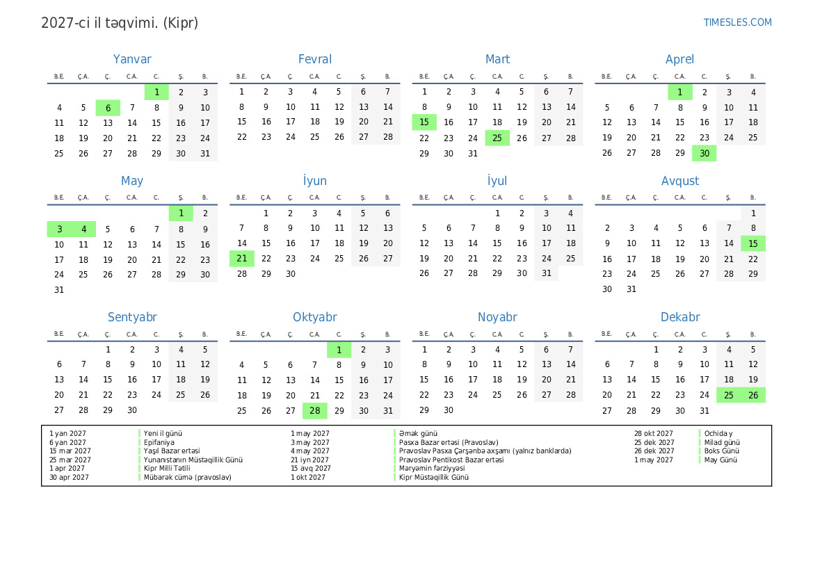 1 apr 2027 Kipr Milli Tətili