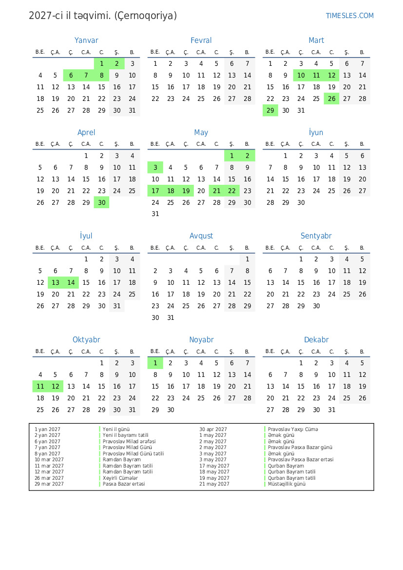 3 may 2027 Pravoslav Pasxa Bazar ertəsi