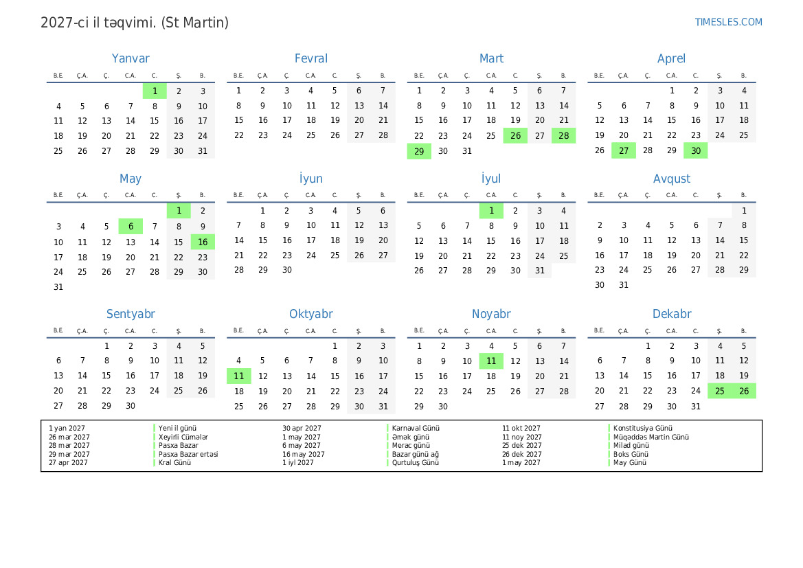 29 mar 2027 Pasxa Bazar ertəsi
