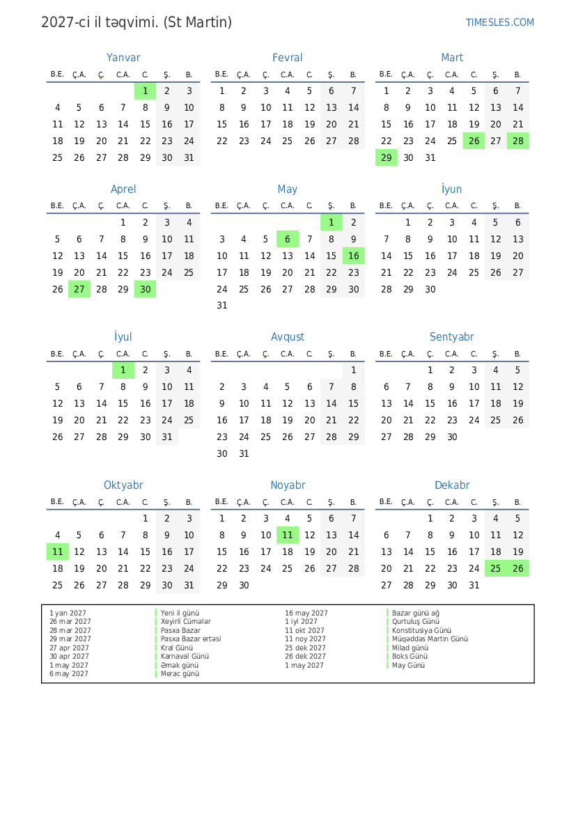 11 noy 2027 Müqəddəs Martin Günü