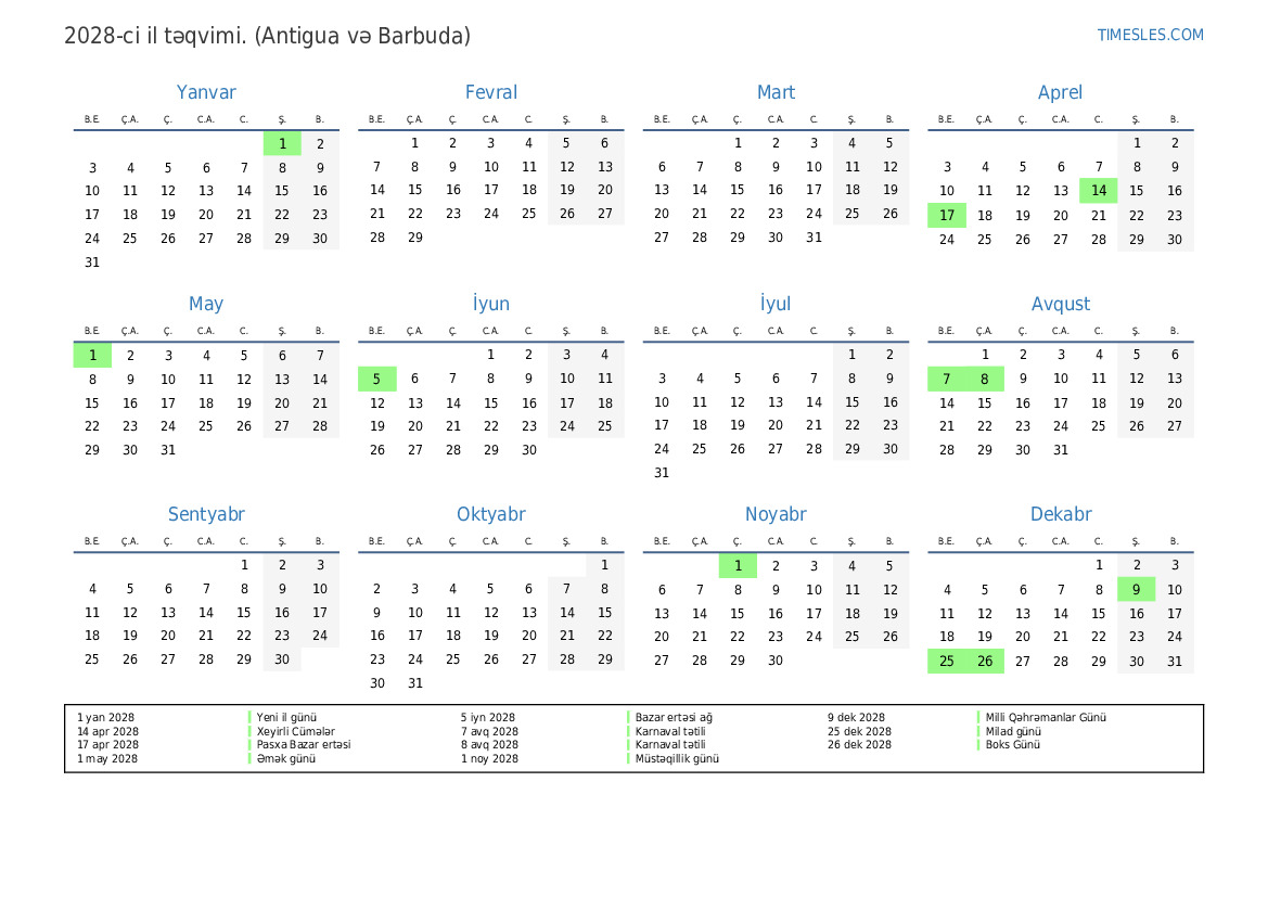 8 avq 2028 Karnaval tətili