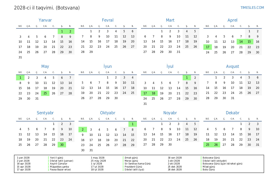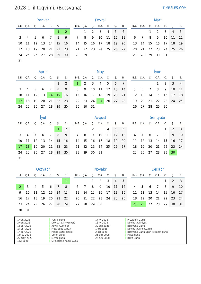 2 okt 2028 Botsvana Günü üçün istirahət günü
