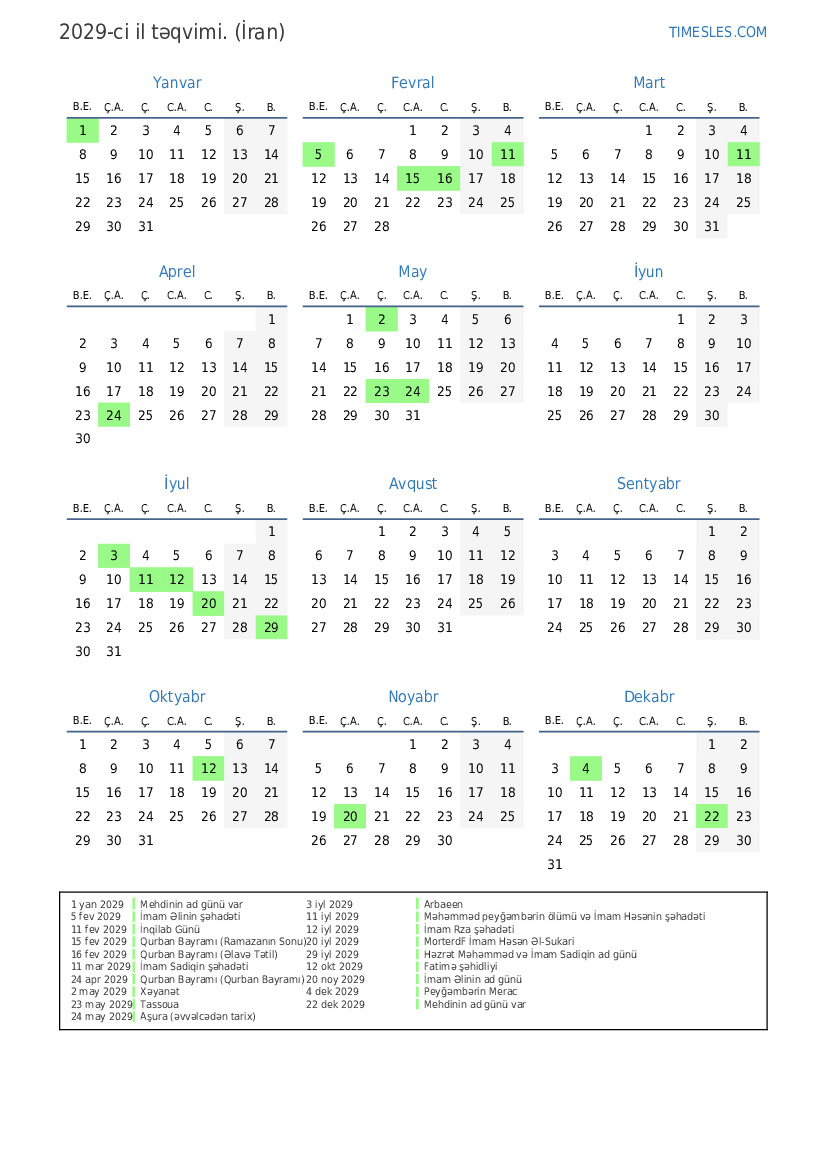 15 fev 2029 Qurban Bayramı (Ramazanın Sonu)