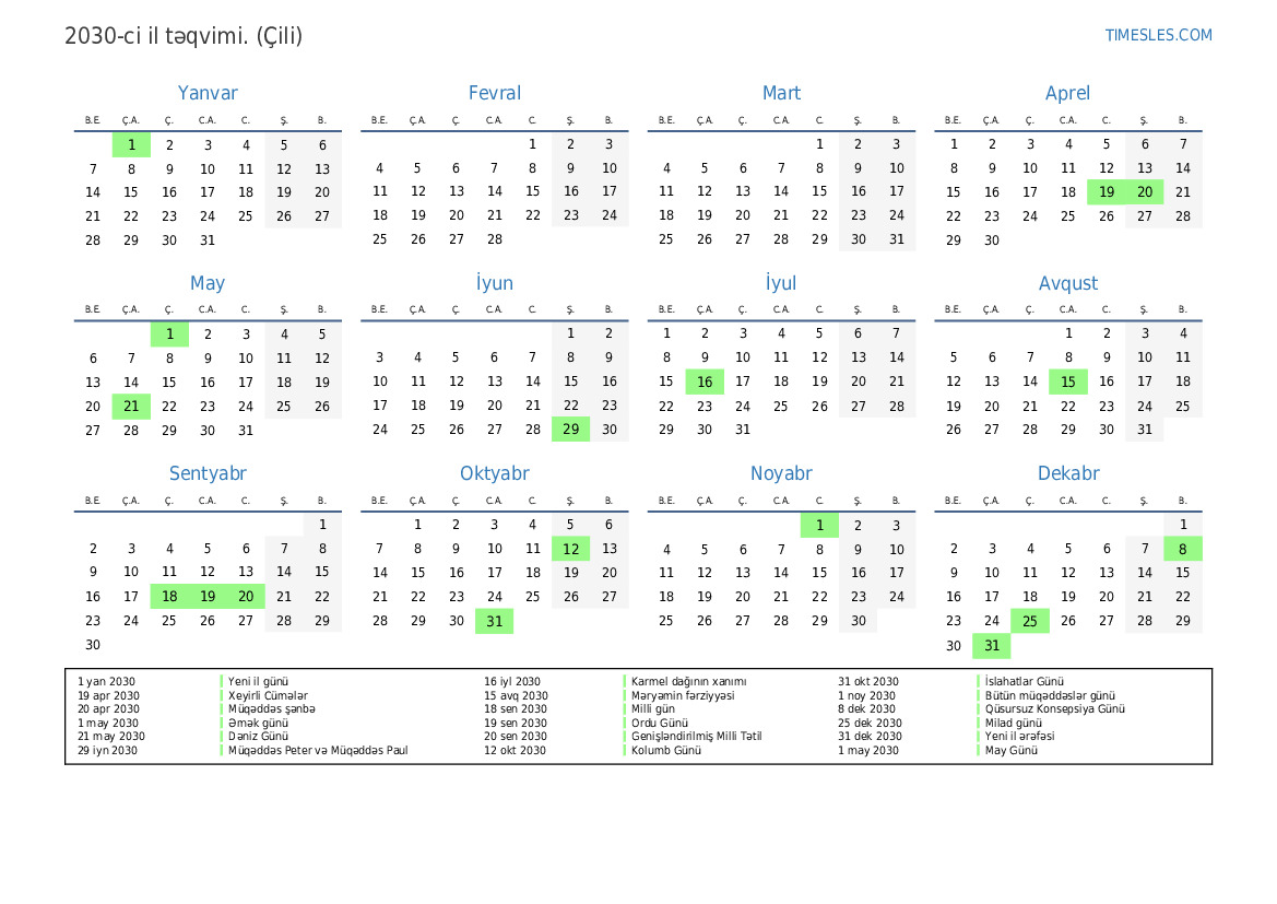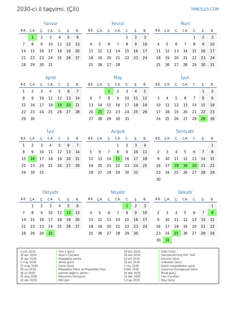20 sen 2030 Genişləndirilmiş Milli Tətil