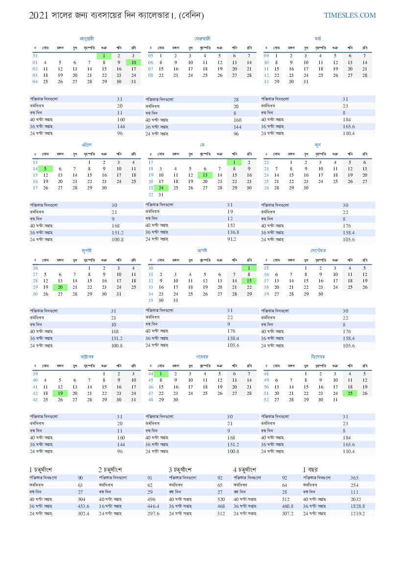 ব্যবসায়ের দিন ক্যালেন্ডার