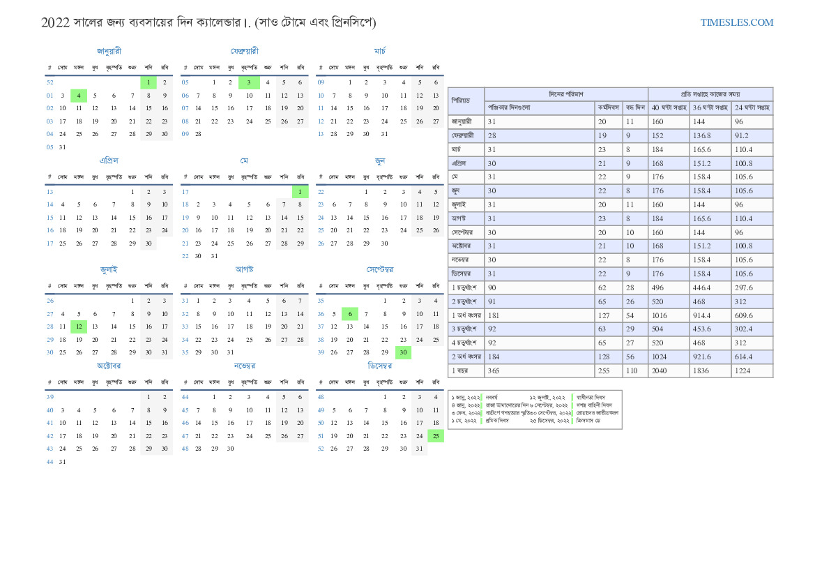 2022 জানুয়ারী সপ্তাহের সাথে ব্যবসায়িক দিন ক্যালেন্ডার। পাঁচ দিনের কাজের সপ্তাহ। 2022 জানুয়ারী সাও টম এবং প্রিন্সিপে ২ ছুটি এবং দিন ছুটি রয়েছে কর্মঘন্টা সহ ছুটির দিনগুলি স্থগিত করে