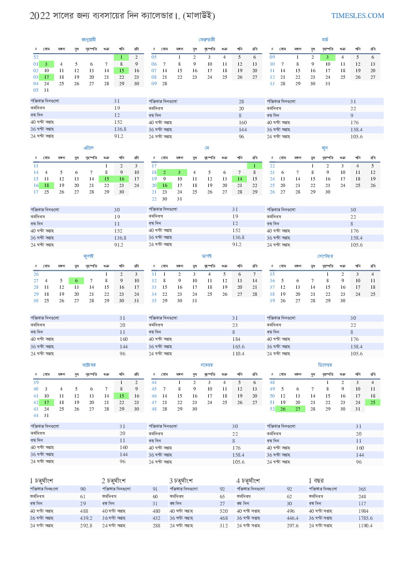 ব্যবসায়ের দিন ক্যালেন্ডার