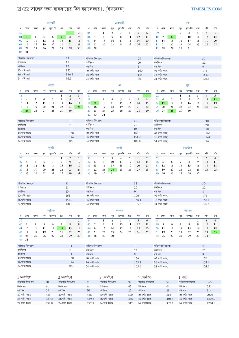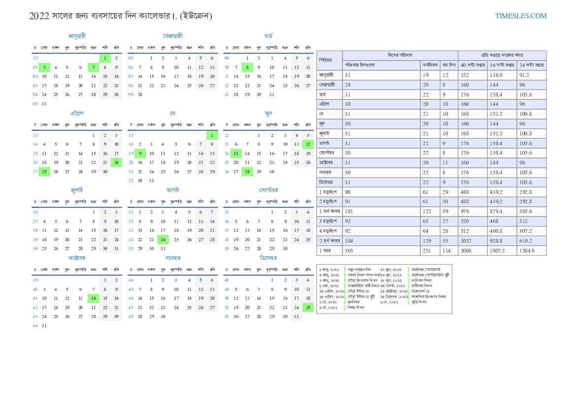 ব্যবসায়ের দিন ক্যালেন্ডার