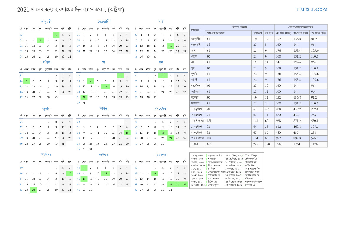 ব্যবসায়ের দিন ক্যালেন্ডার