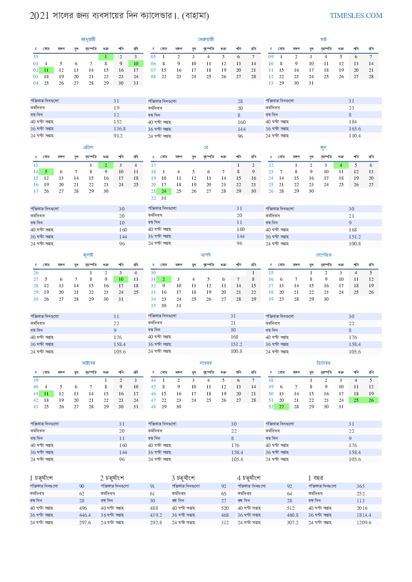 ব্যবসায়ের দিন ক্যালেন্ডার