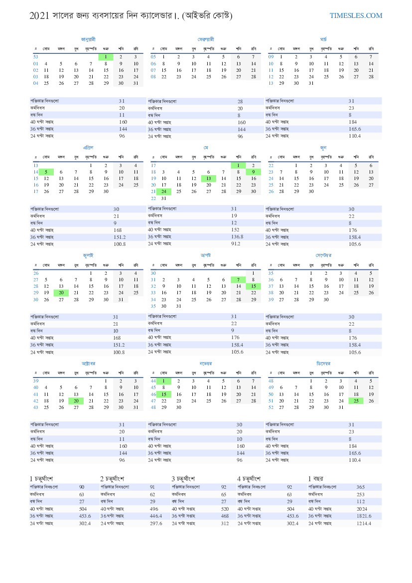 ব্যবসায়ের দিন ক্যালেন্ডার