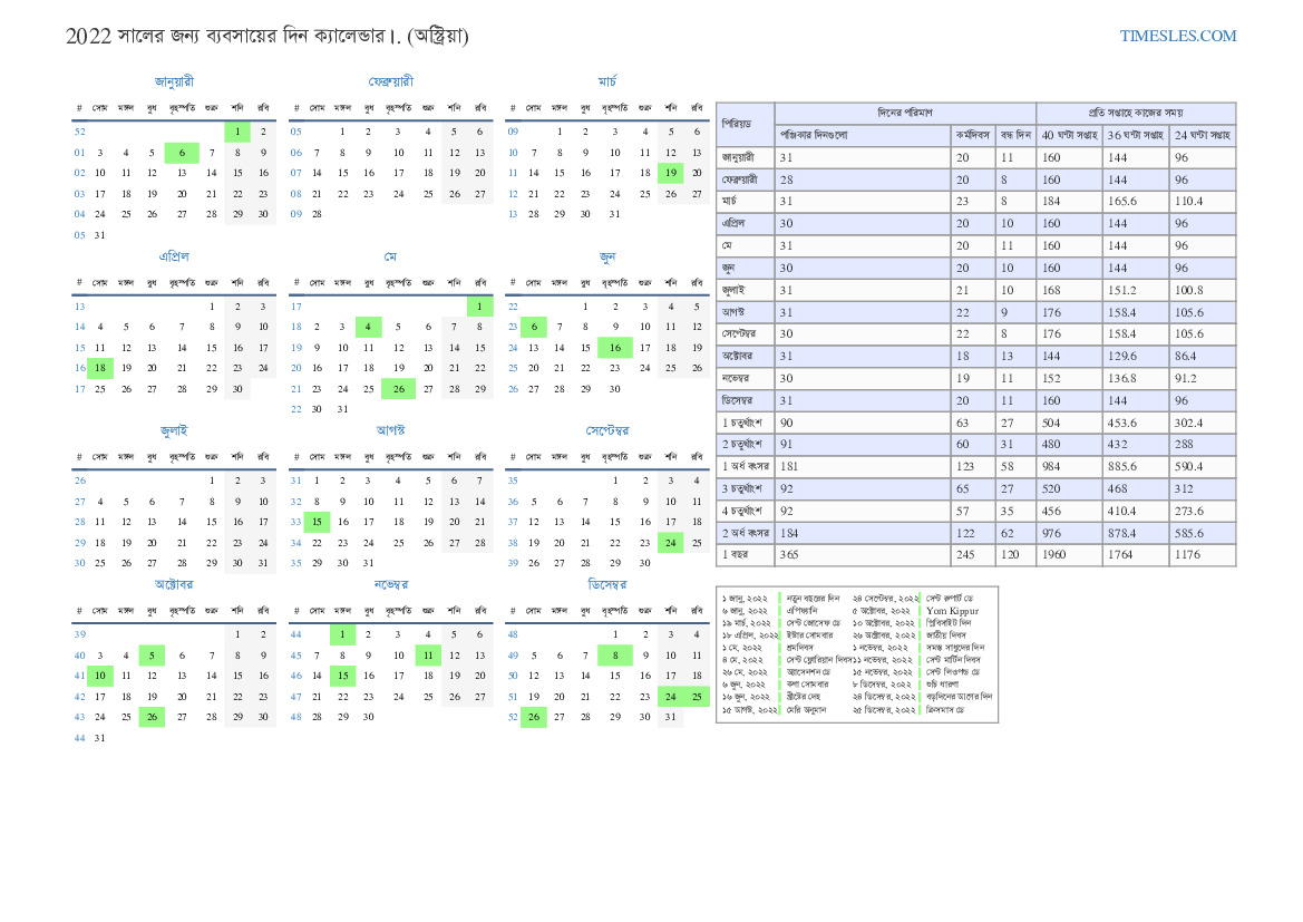 অস্ট্রিয়া জন্য 2022 এর 3 ত্রৈমাসিকের ছুটি এবং সাপ্তাহিক ছুটির সাথে পিডিএফ ব্যবসায় দিবস ক্যালেন্ডার ডাউনলোড এবং মুদ্রণ করুন