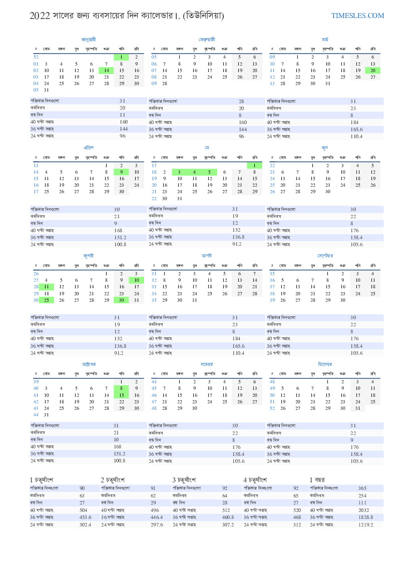 ব্যবসায়ের দিন ক্যালেন্ডার