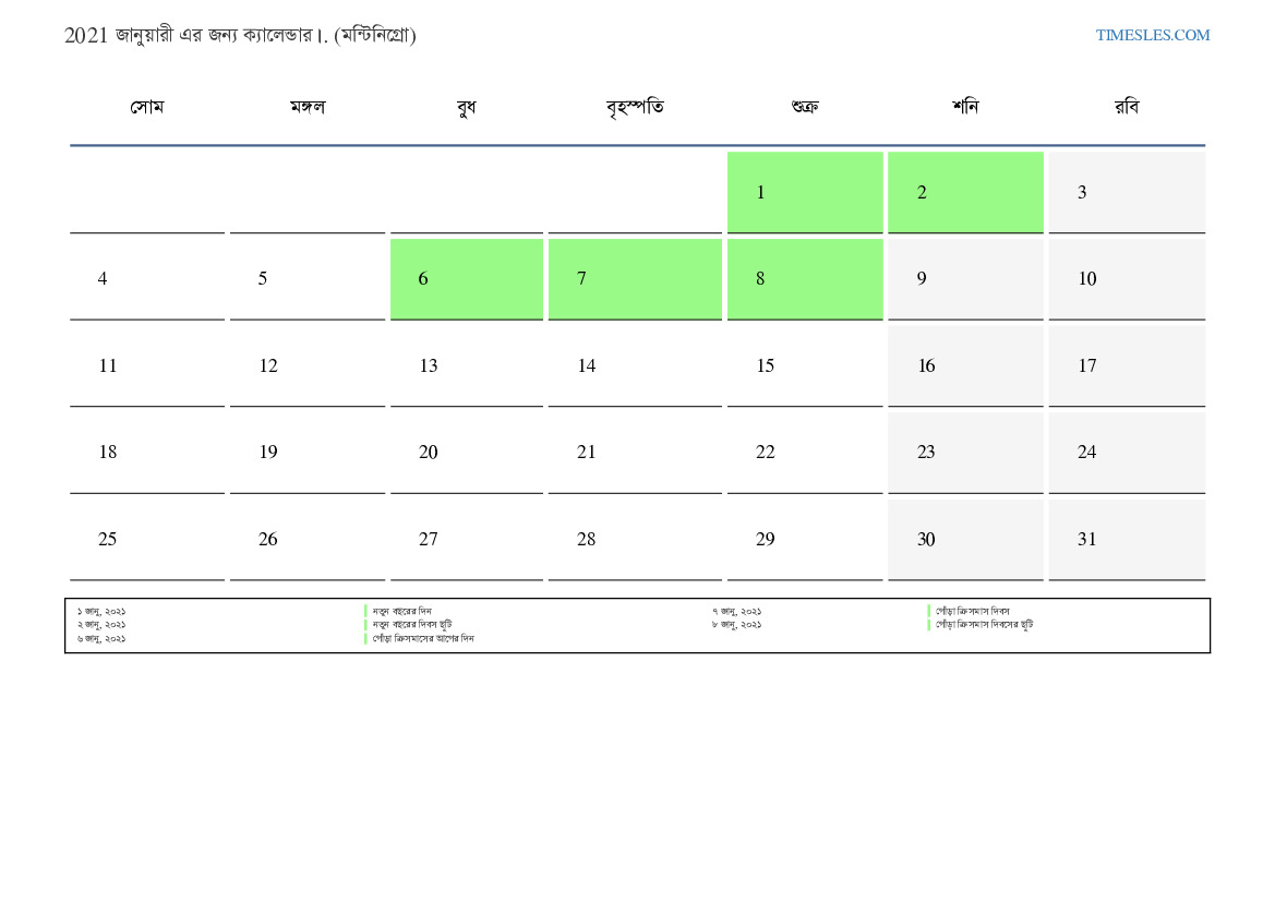 ২ জানু, ২০২১ নতুন বছরের দিবস ছুটি
