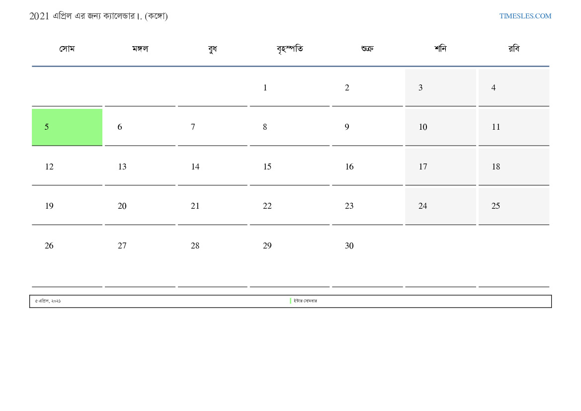 ৫ এপ্রিল, ২০২১ ইস্টার সোমবার