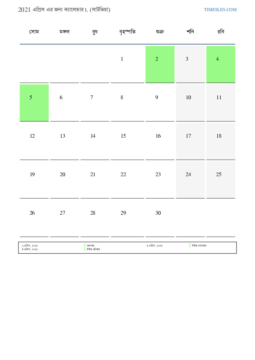 লাটভিয়ার জন্য 2021 এপ্রিল এর জন্য ছুটির দিন এবং সপ্তাহান্তের ক্যালেন্ডার