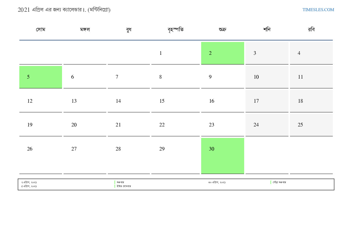 মন্টিনিগ্রোর জন্য 2021 এপ্রিল এর জন্য ছুটির দিন এবং সপ্তাহান্তের ক্যালেন্ডার