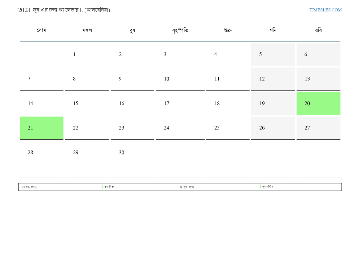 আলবেনিয়ার জন্য 2021 জুন এর জন্য ছুটির দিন এবং সপ্তাহান্তের ক্যালেন্ডার
