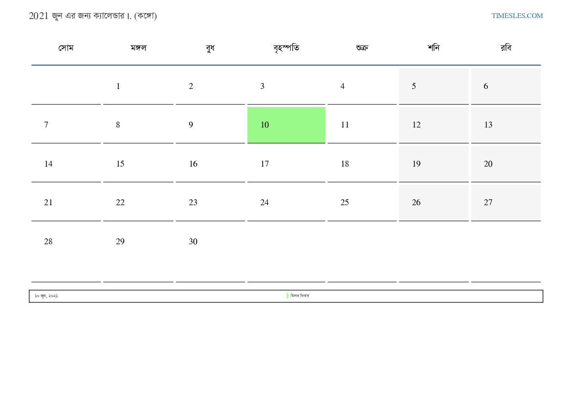 কঙ্গোর জন্য জুন জুন ছুটি এবং সাপ্তাহিক ছুটির সাথে পিডিএফ ক্যালেন্ডার ডাউনলোড এবং মুদ্রণ করুন