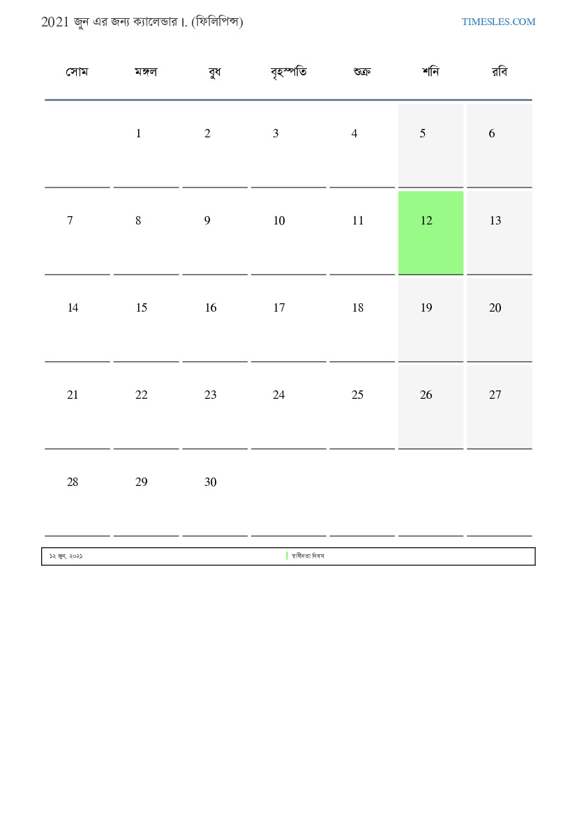 ফিলিপাইন জন্য 2021 জুন এর জন্য ছুটির দিন এবং সপ্তাহান্তের ক্যালেন্ডার