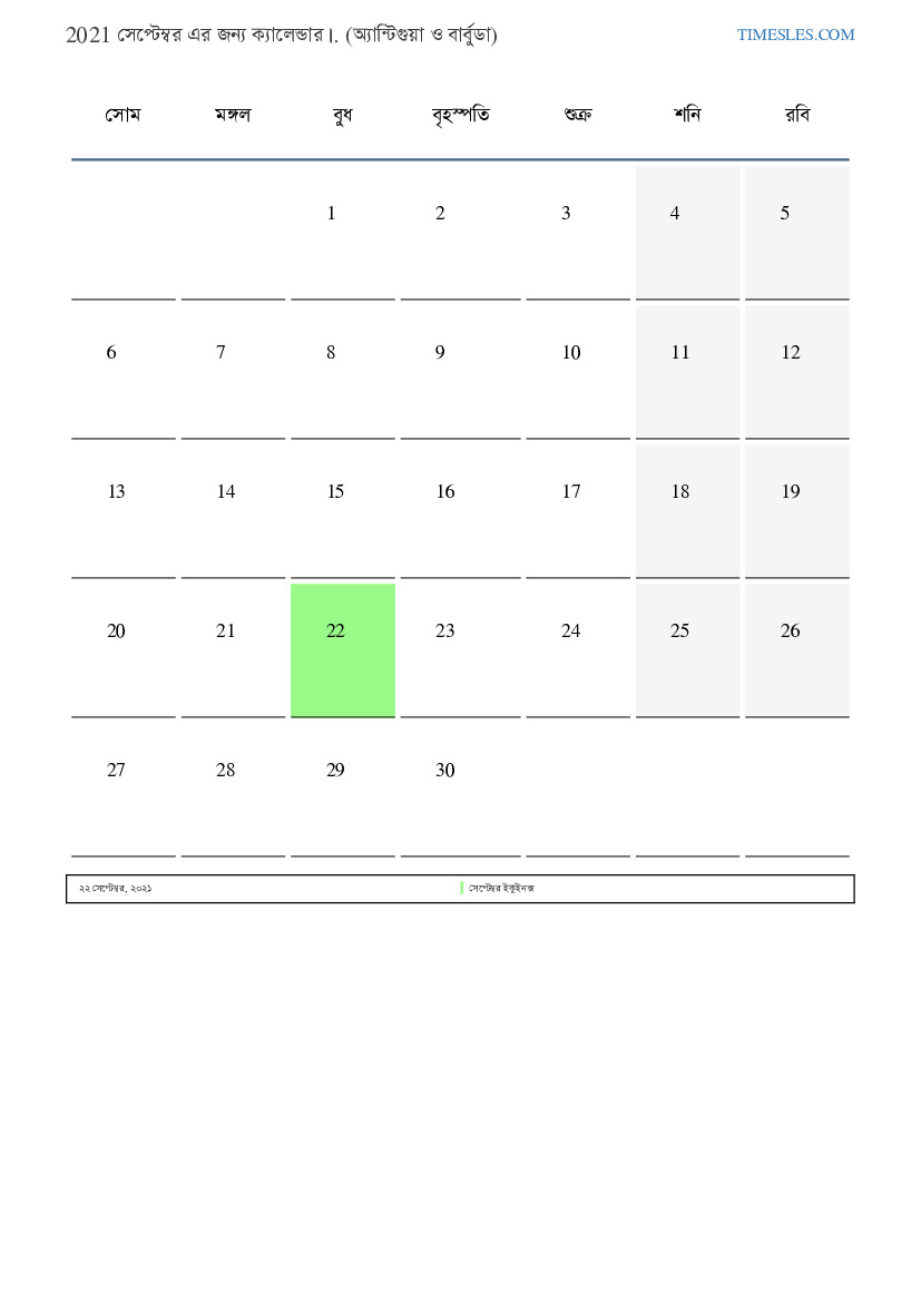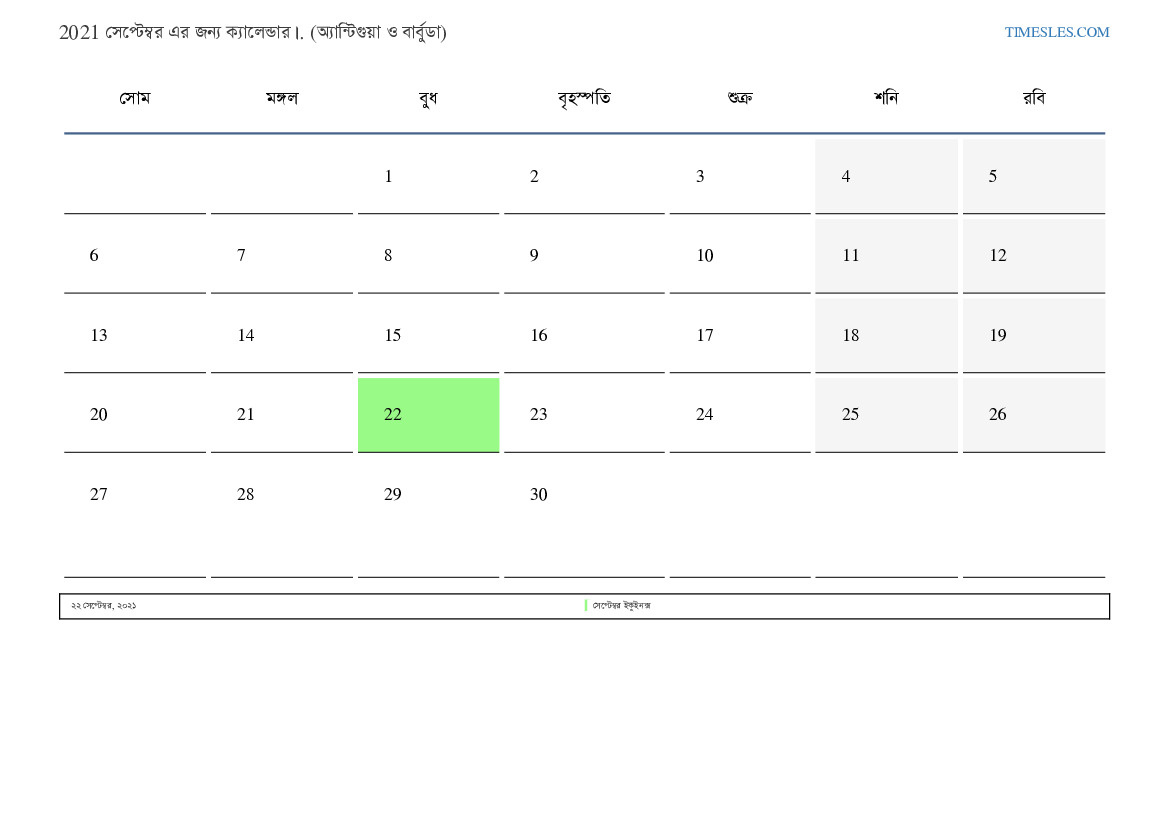 অ্যান্টিগুয়া এবং বার্বুডা জন্য 2021 সেপ্টেম্বর এর জন্য ছুটির দিন এবং সপ্তাহান্তের ক্যালেন্ডার
