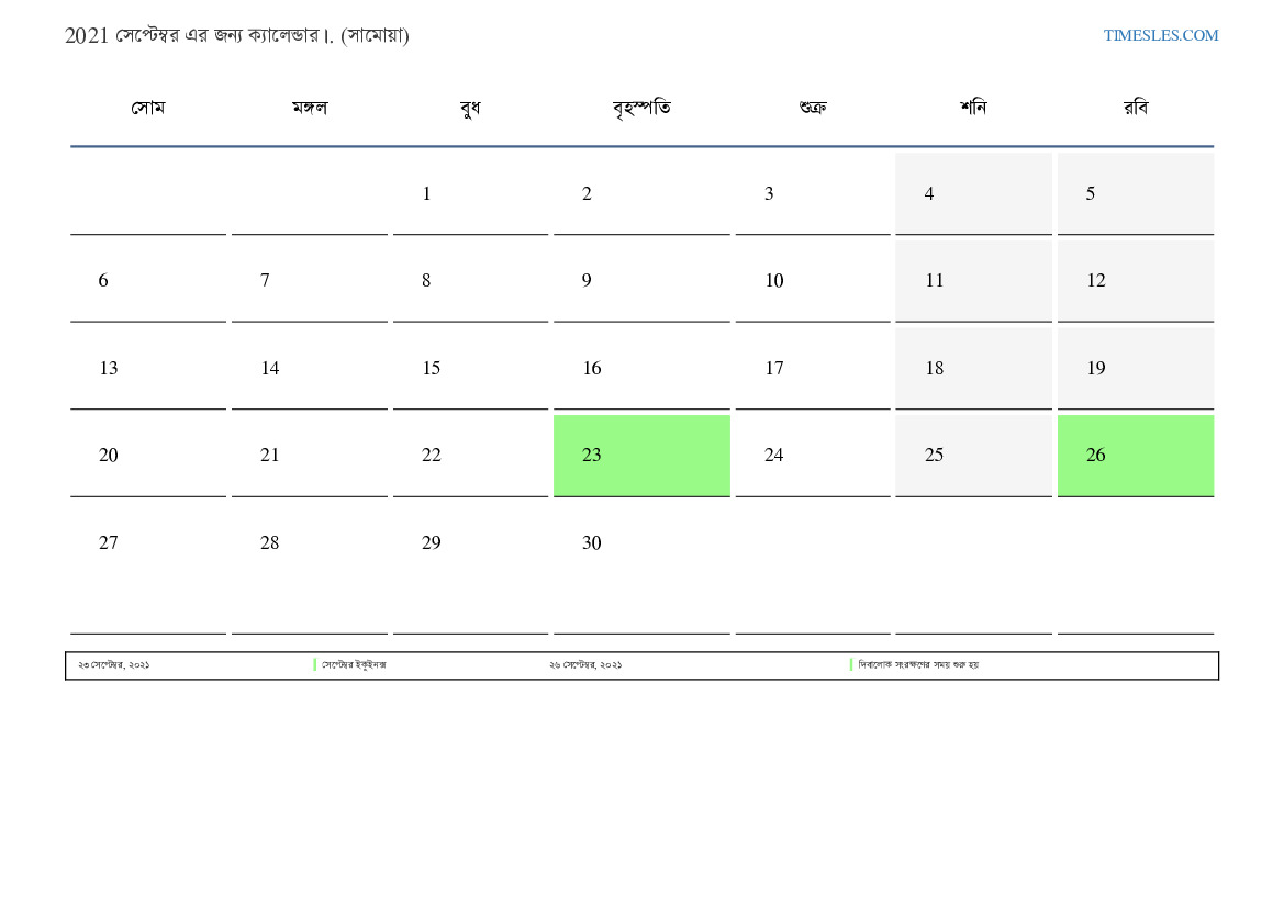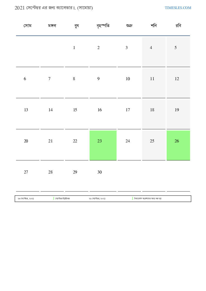 সামোয়া জন্য 2021 সেপ্টেম্বর এর জন্য ছুটির দিন এবং সপ্তাহান্তের ক্যালেন্ডার