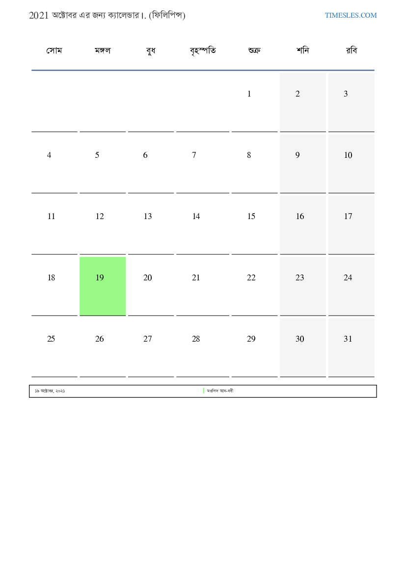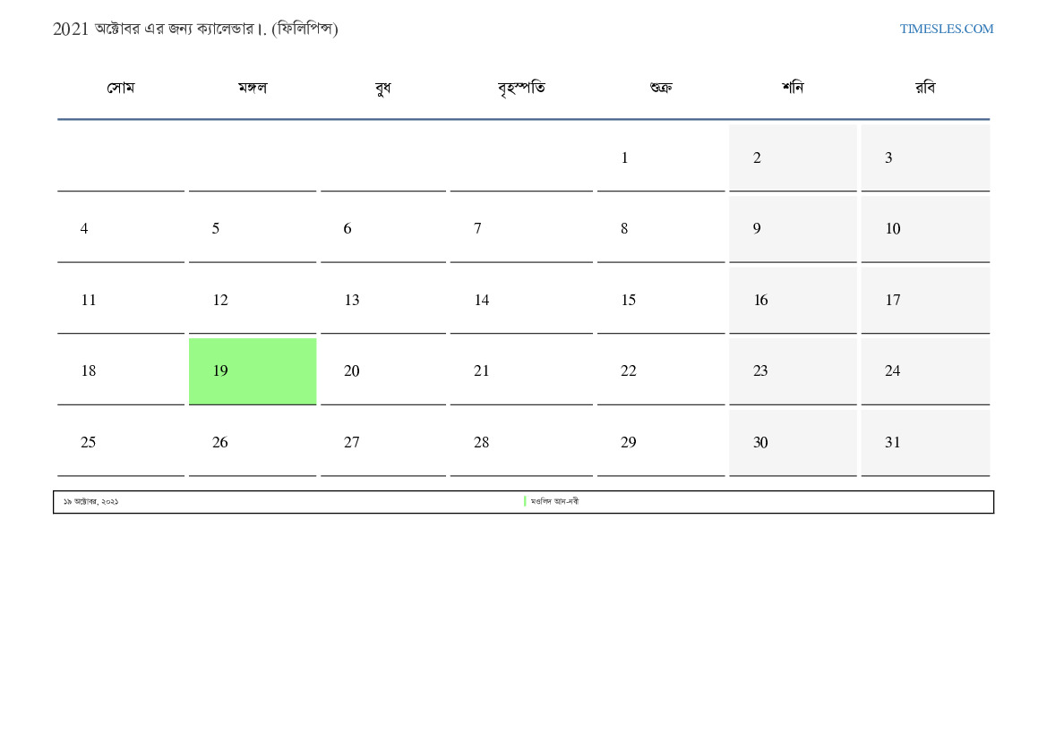 ফিলিপাইন জন্য 2021 অক্টোবর এর জন্য ছুটির দিন এবং সপ্তাহান্তের ক্যালেন্ডার