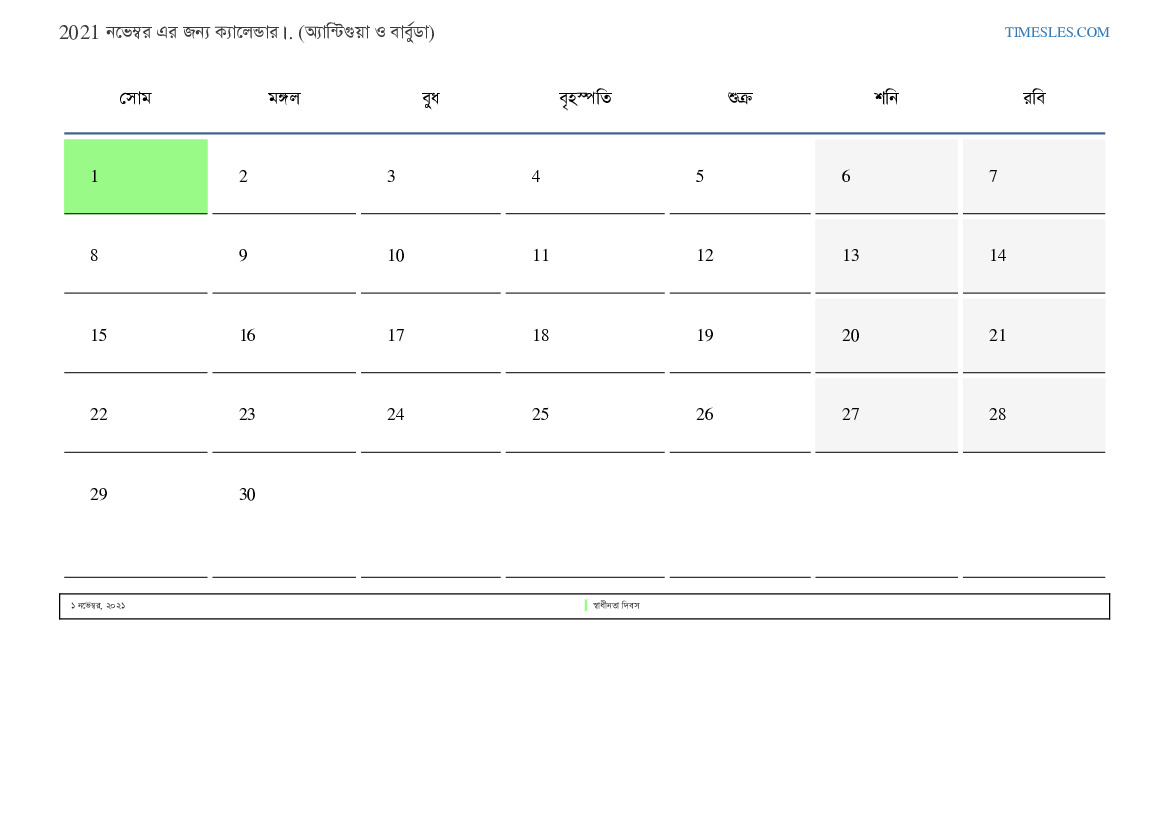 অ্যান্টিগুয়া এবং বার্বুডা জন্য 2021 নভেম্বর এর জন্য ছুটির দিন এবং সপ্তাহান্তের ক্যালেন্ডার