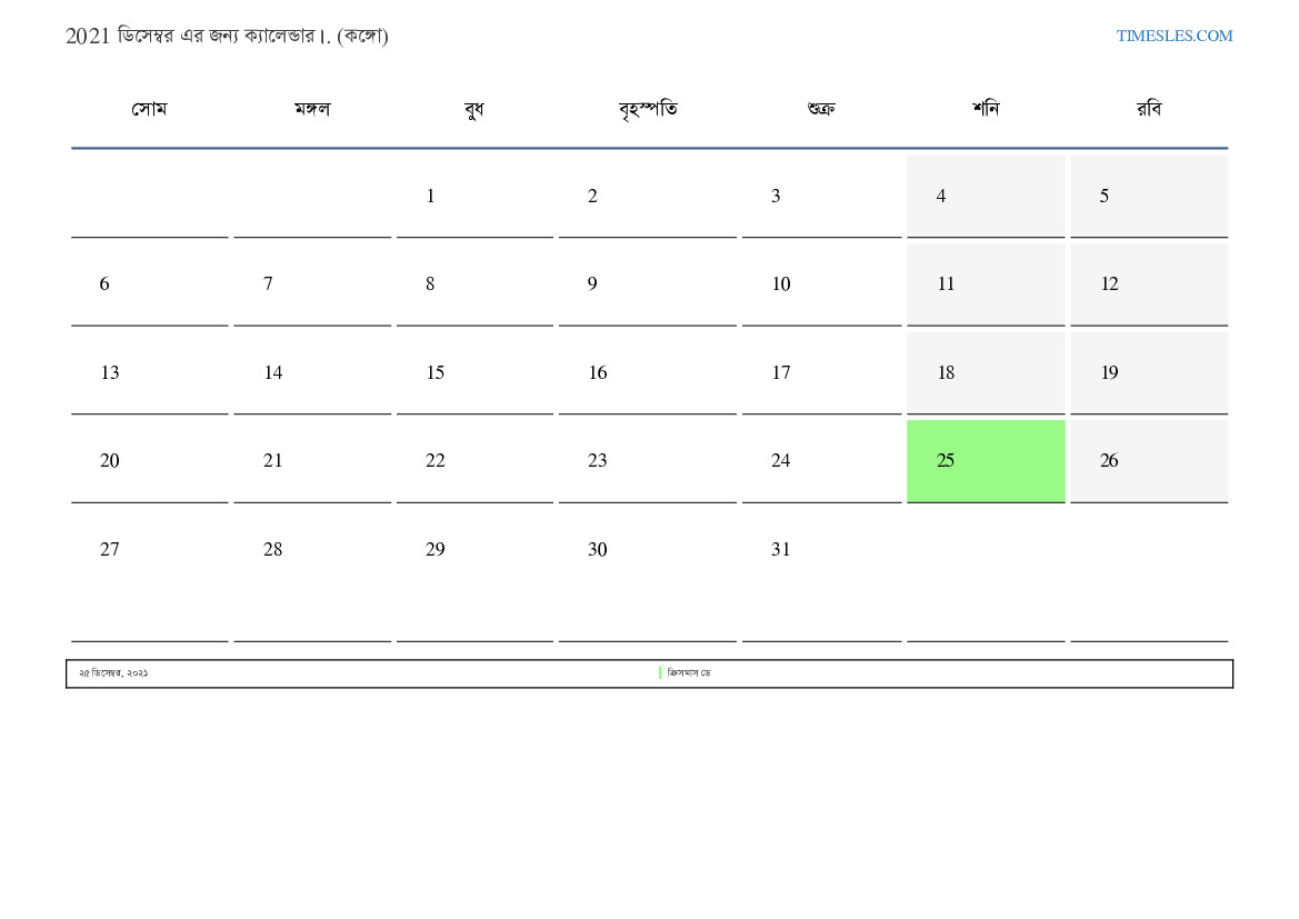 ২৫ ডিসেম্বর, ২০২১ ক্রিসমাস ডে