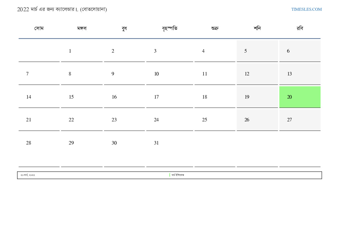 বতসোয়ানা জন্য 2022 মার্চ এর জন্য ছুটির দিন এবং সপ্তাহান্তের ক্যালেন্ডার