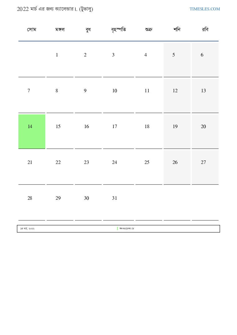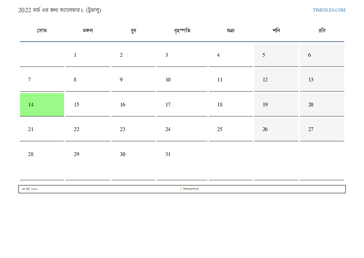 টুভালুর জন্য 2022 মার্চ এর জন্য ছুটির দিন এবং সপ্তাহান্তের ক্যালেন্ডার