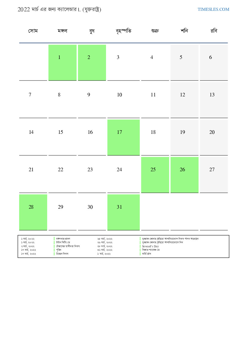 ১ মার্চ, ২০২২ মঙ্গলবার শ্রাবণ