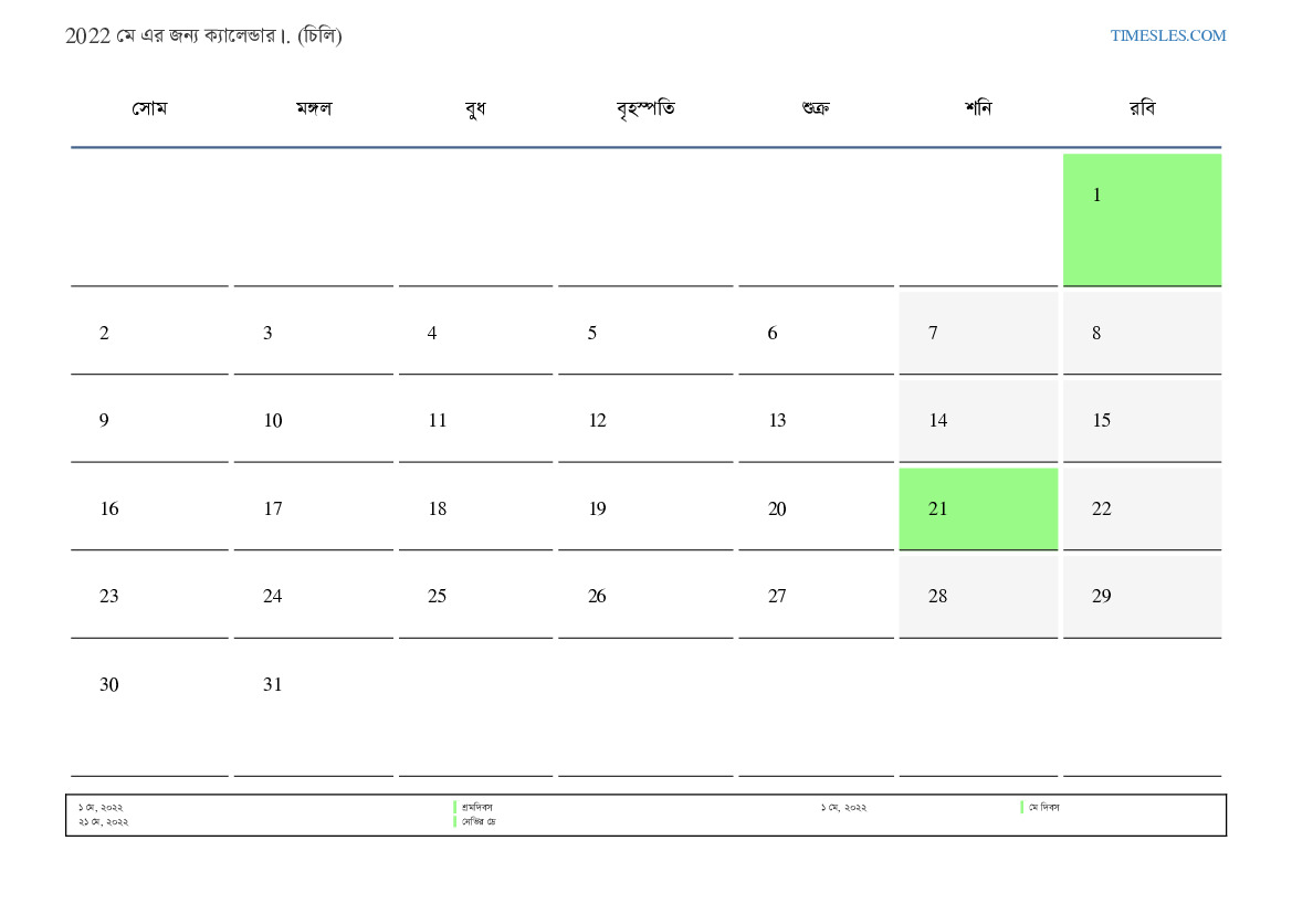 চিলির জন্য 2022 মে এর জন্য ছুটির দিন এবং সপ্তাহান্তের ক্যালেন্ডার