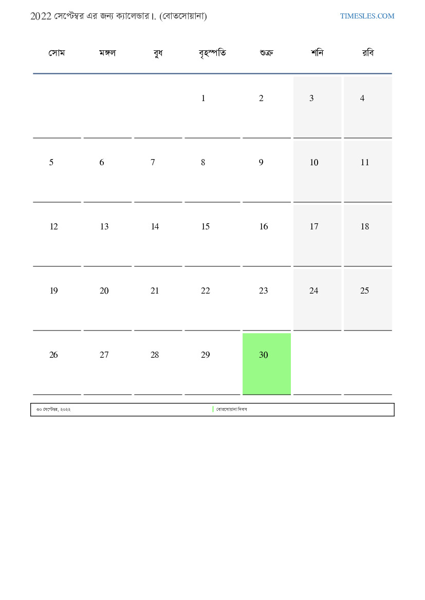 বতসোয়ানা জন্য 2022 সেপ্টেম্বর এর জন্য ছুটির দিন এবং সপ্তাহান্তের ক্যালেন্ডার