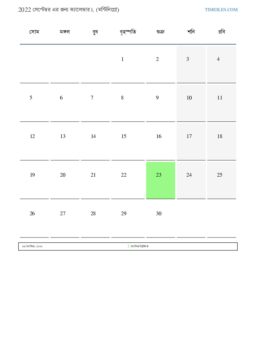 মন্টিনিগ্রোর জন্য 2022 সেপ্টেম্বর এর জন্য ছুটির দিন এবং সপ্তাহান্তের ক্যালেন্ডার