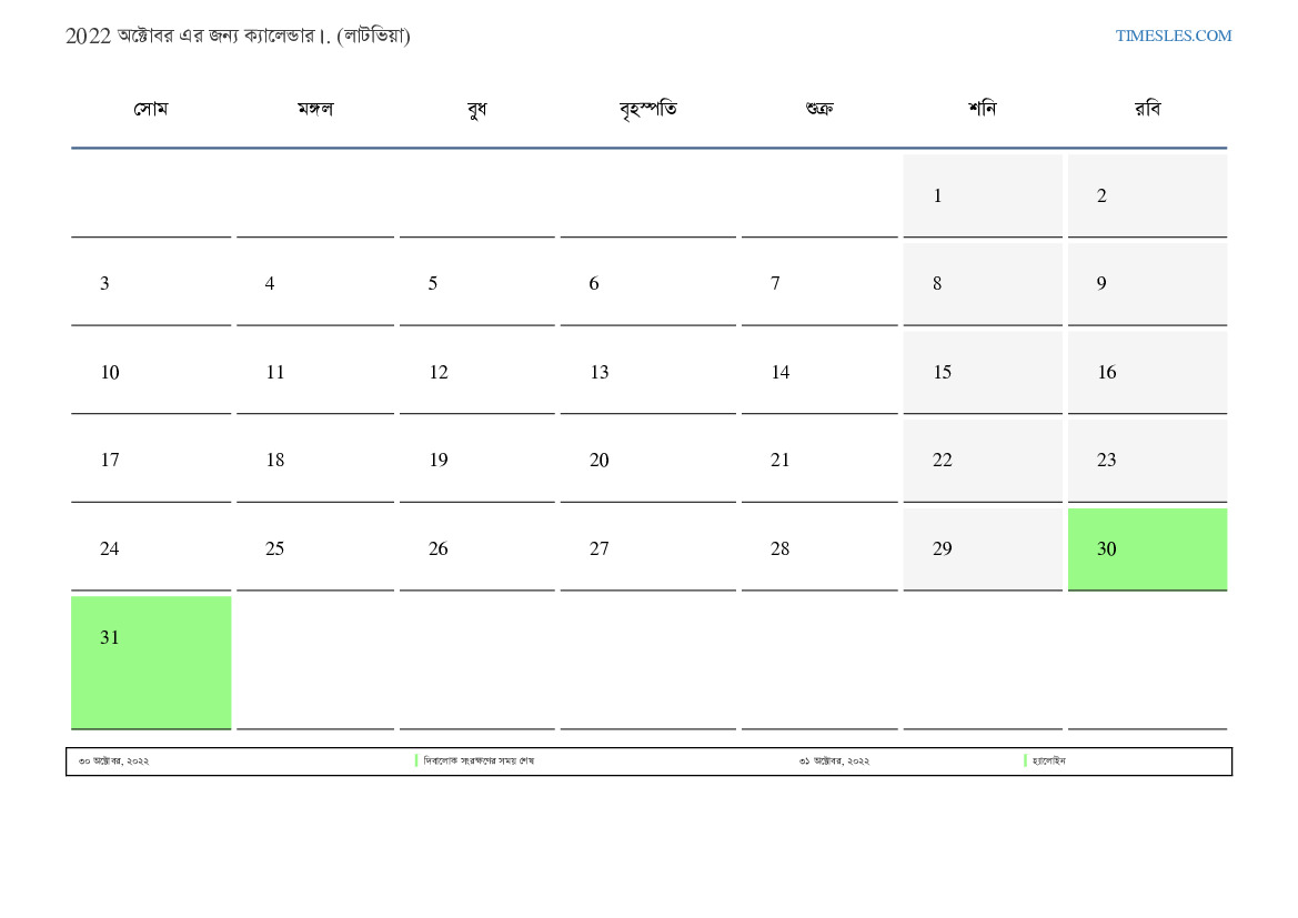 লাটভিয়ার জন্য 2022 অক্টোবর এর জন্য ছুটির দিন এবং সপ্তাহান্তের ক্যালেন্ডার