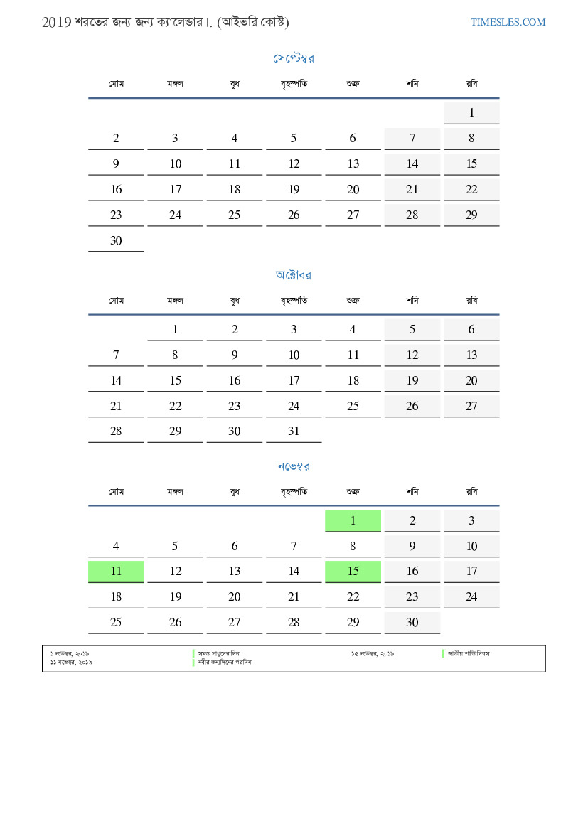 কোট ডি'ভায়ারের জন্য 2019 সালের শরতের জন্য ছুটি এবং সাপ্তাহিক ছুটির সাথে পিডিএফ ক্যালেন্ডার ডাউনলোড এবং মুদ্রণ করুন