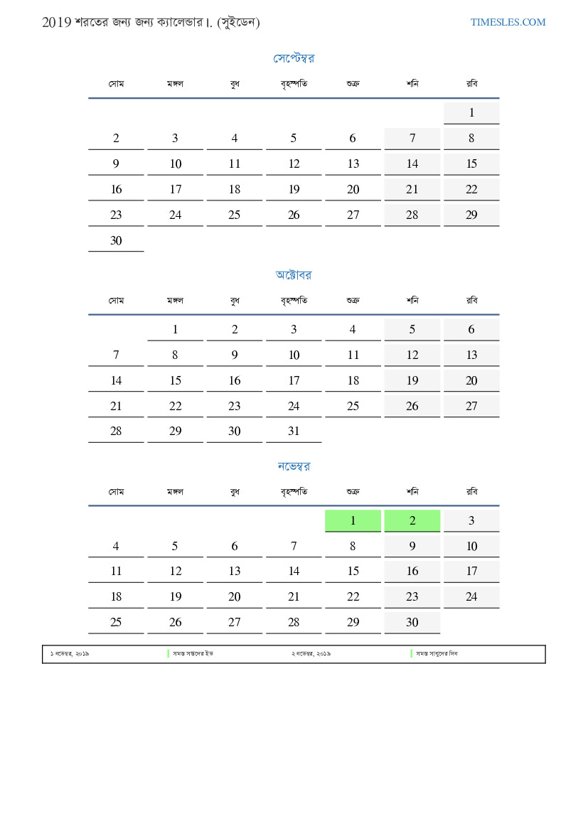 সুইডেনের জন্য 2019 সালের শরতের জন্য ছুটি এবং সাপ্তাহিক ছুটির সাথে পিডিএফ ক্যালেন্ডার ডাউনলোড এবং মুদ্রণ করুন