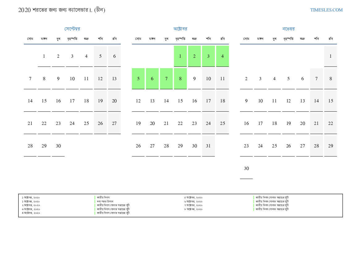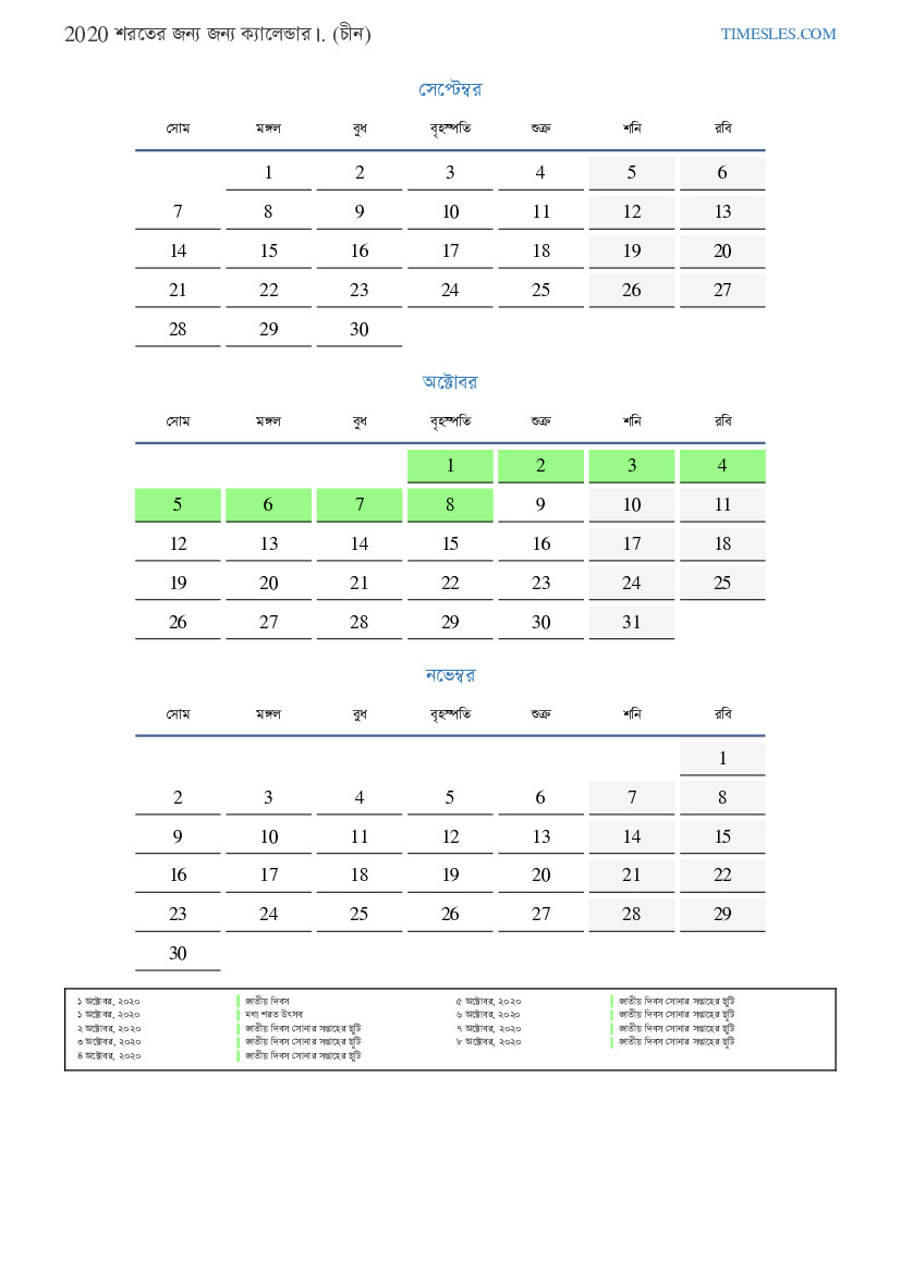 ৬ অক্টোবর, ২০২০ জাতীয় দিবস সোনার সপ্তাহের ছুটি